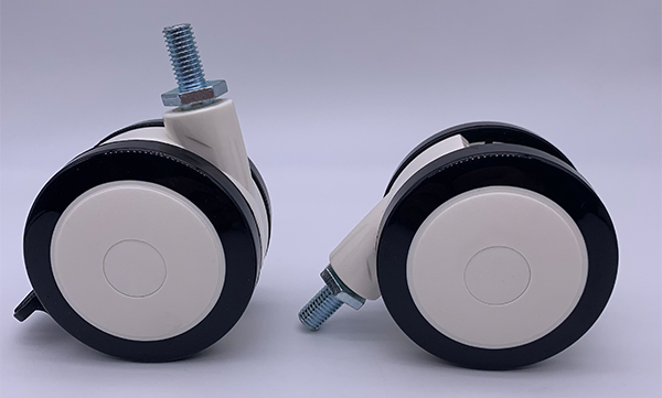 Two-wheel medical casters, the double-wheel design enables the casters to be turned in narrow corners, the wheels are matched with precision silent bearings to make the wheels rotate very smoothly and without noise, widely used as medical cart casters, medical cabinet casters.